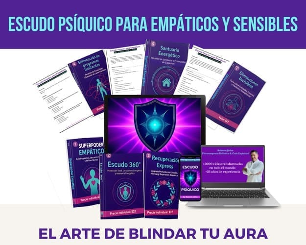 - Escudo Psíquico: Diseñado específicamente para personas sensibles y empáticas. Aprende a regular tu energía, poner límites sanos y dejar de absorber cargas externas.
